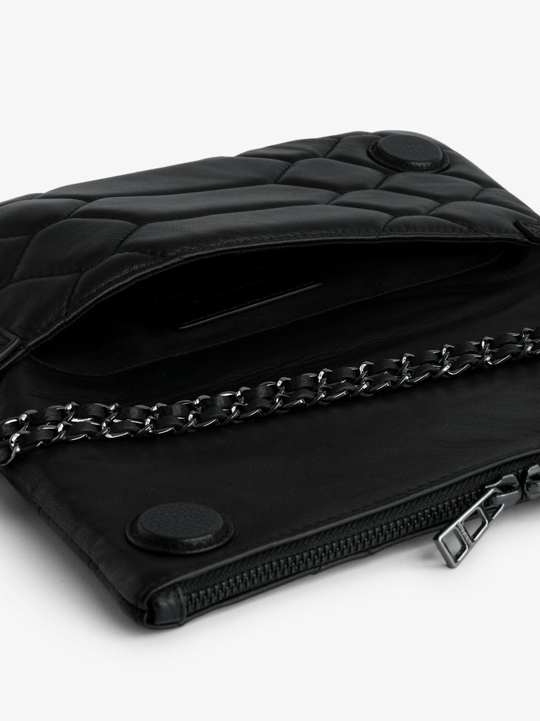 – Rock iconic women’s quilted black leather clutch