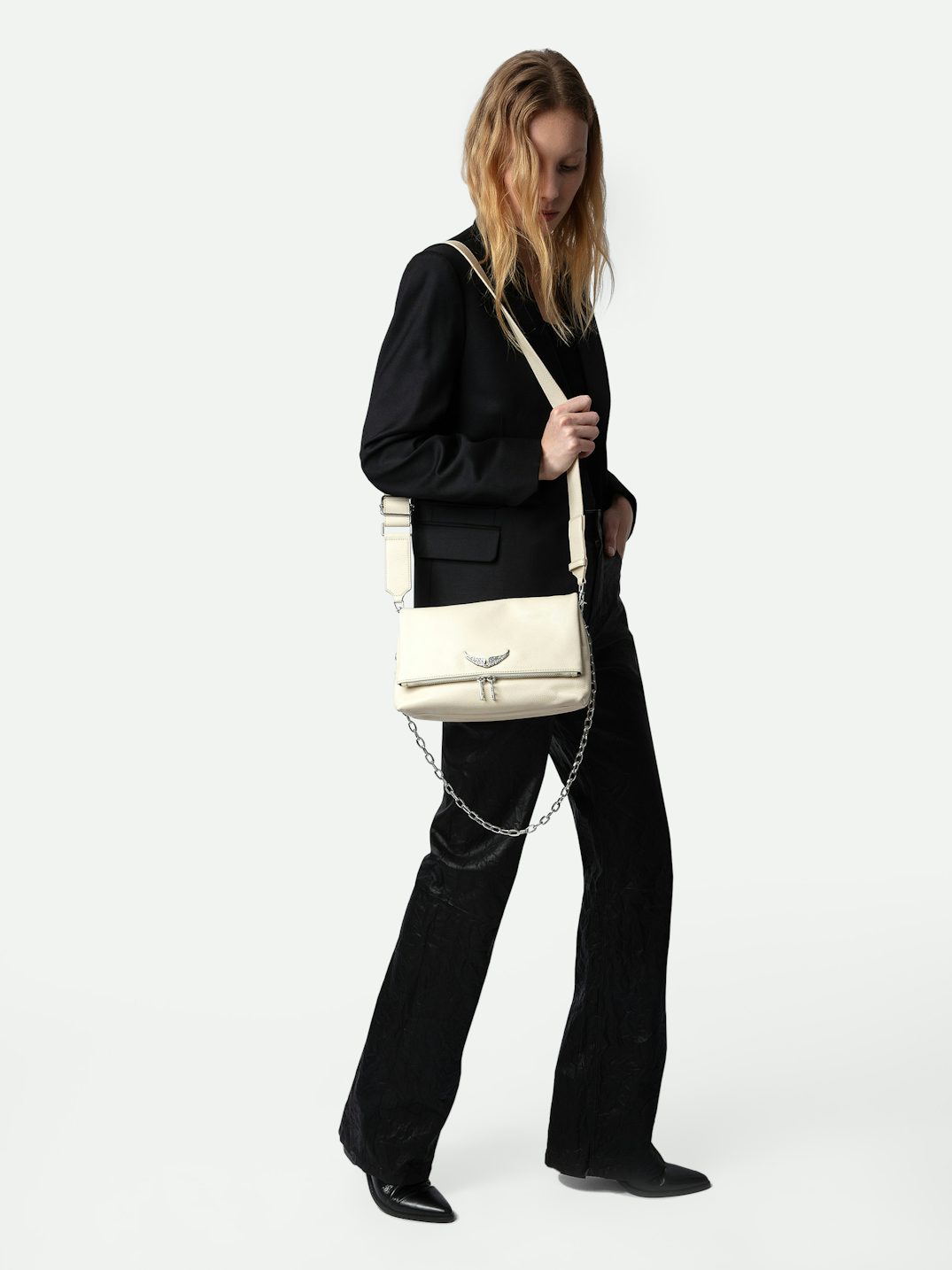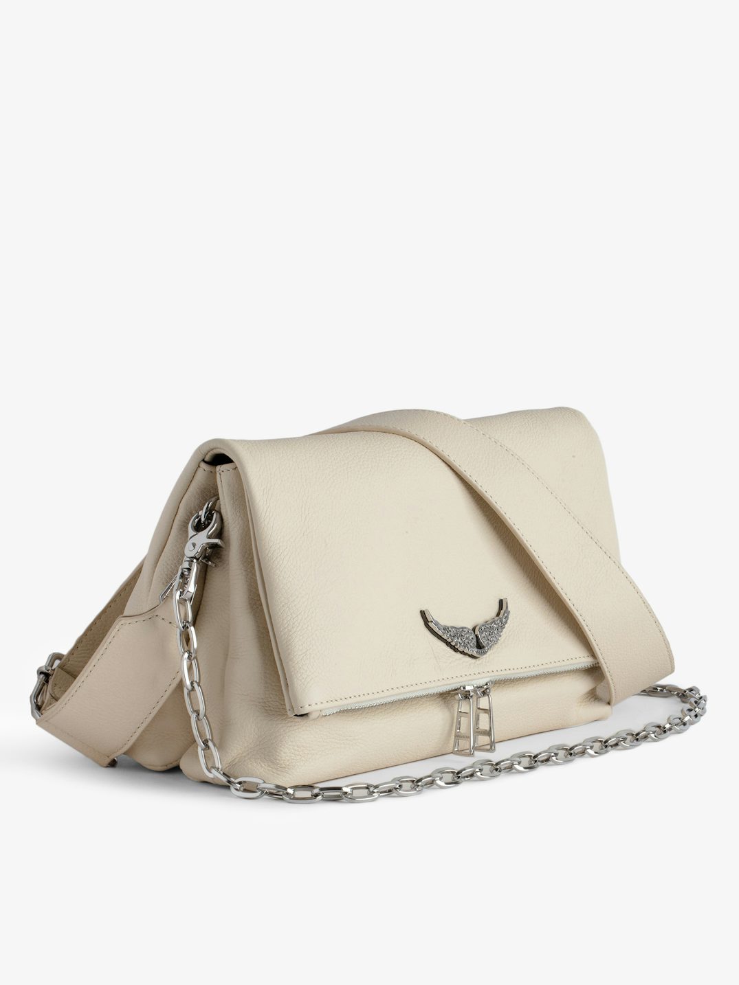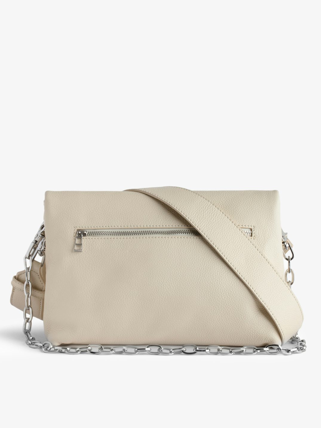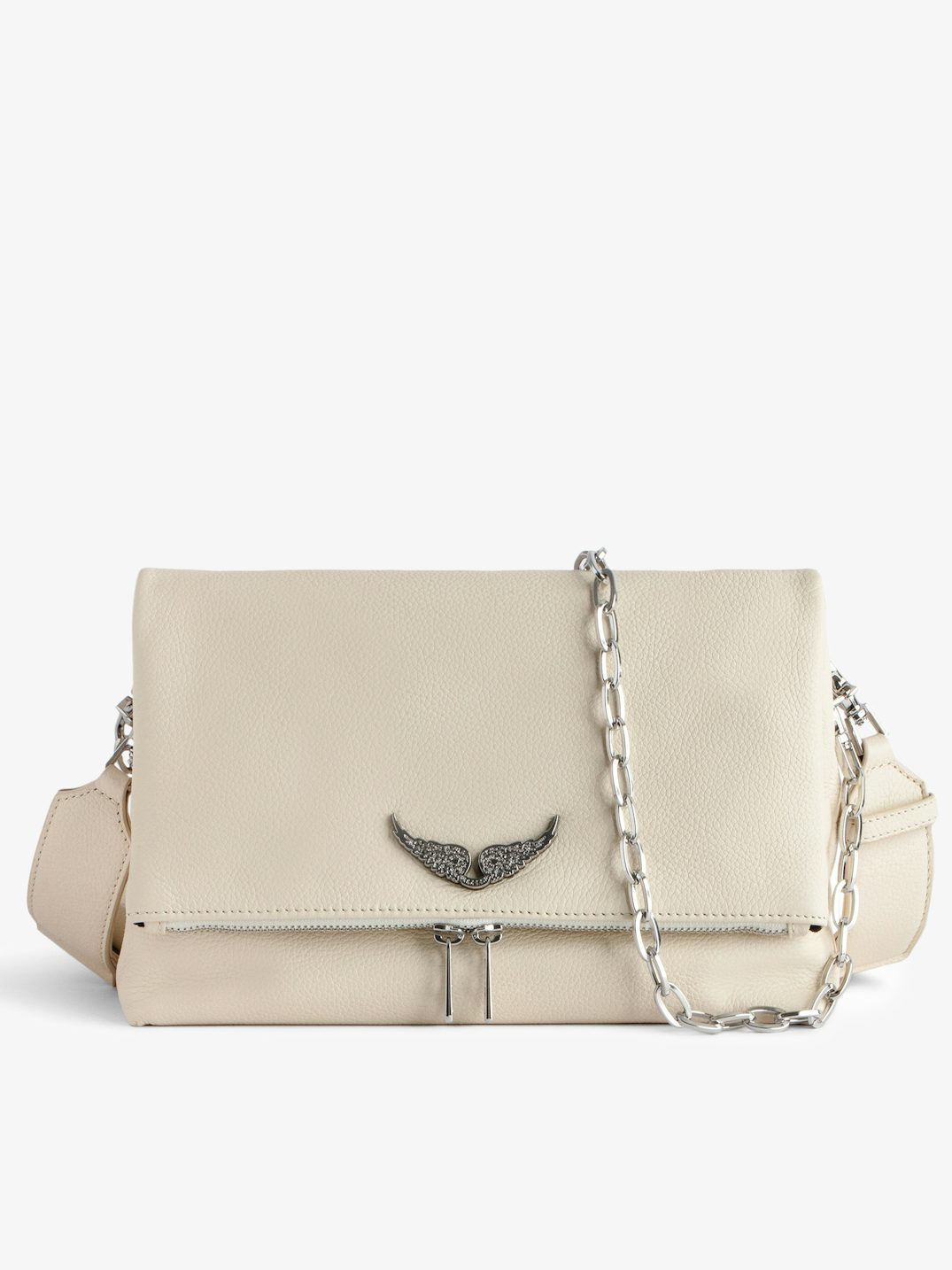 Iconic, the Rock clutch is ideal for effortlessly transitioning from a daytime look to an evening look. It is equipped with a metal chain interwoven with leather to wear crossbody or on the shoulder depending on your desires.
